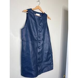 mini, minidress, dress, casual, comfy, breathable, buttondown, navy, jewelneck, sleeveless, unlined, modern, chic, summer, winter, fall, spring