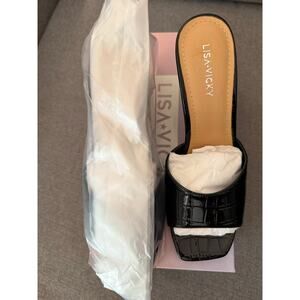 NEW Lisa Vicky Nordstrom Adore-V Croco Wedge Sandals Black Patent Leather 6.5