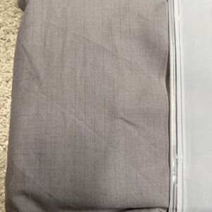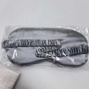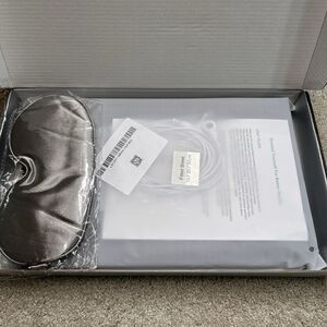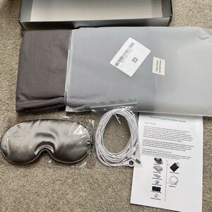 Brand new fitted sheet in box. Bonus: Silk and silver sleep mask-$19.99 value. No flaws. See all photos for measurements, features and design details. Please note the box has light cosmetic imperfections--see photos. Sheet is dark gray with faint plaid line pattern.