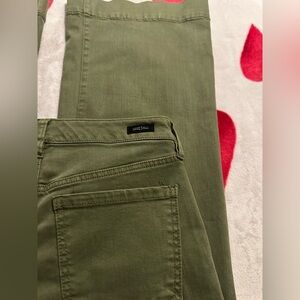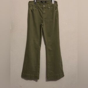 Chic olive wide leg jeans. Perfect for versatile styling.