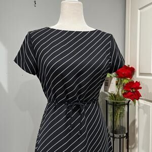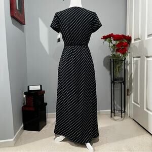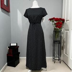 NEW Liz Claiborne Classic Longline Bias Striped Tie Waist Full Draped Maxi Dress