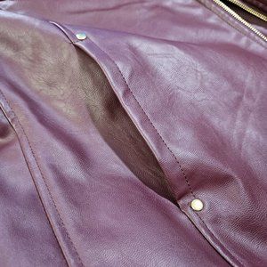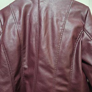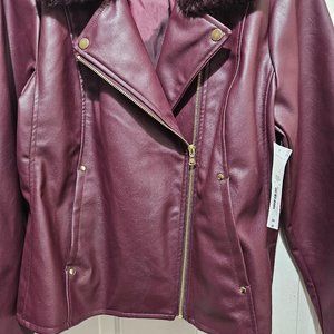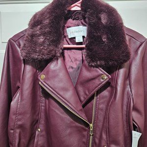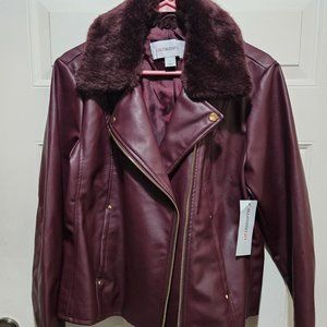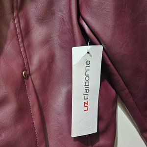 NEW Liz Claiborne Removable Faux Fur Collar Zip Coat size L Faux Leather Maroon
