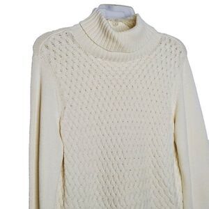 NEW Liz Claiborne Knit Turtleneck Sweater XL Basket Weave Cream Cotton Preppy