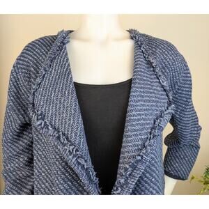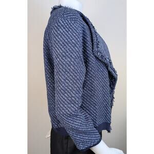NEW Loft Blue & Gray Tweed Fringed Open Cardigan Sweater Blazer Career Sz Large