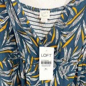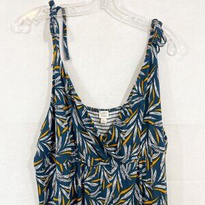 NEW Loft Blue Leaf Jersey Knit Wide Leg Jumpsuit Surplice Tie Straps Size XL