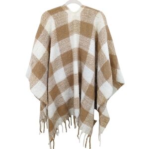 NEW Loft Buffalo Check Wrap Shawl Poncho Tan and White One Size Soft