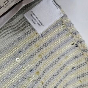 Key features: beige/grey/ivory with subtle yellow woven in, tiny sequin detail, lightweight