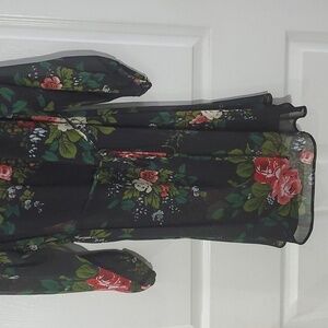 A sweet and swingy silhouette in fresh florals, this effortlessly romantic frock is a celebration in and of itself. Ballet neck. 3/4 sleeves with puffed shoulders and elasticized cuffs. Removable waist tie. Back button keyhole. Attached spaghetti strap slip lining. Great condition see pics