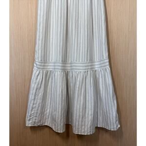 NEW Loft Linen Blend Tiered Maxi Dress Womens Size 6 Petite Striped Lined Cream Tan Silver