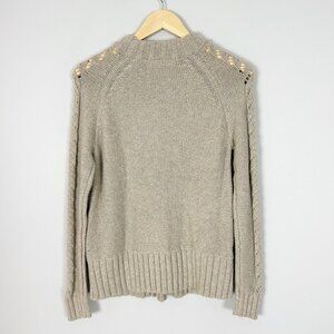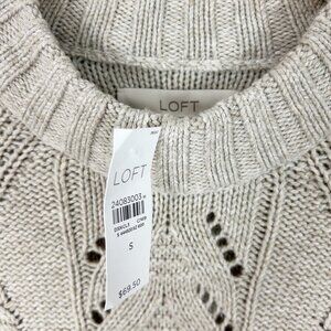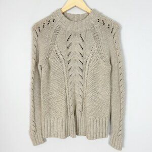NEW Loft Mock Neck Sweater Oatmeal Cableknit Pointelle Size Small Women's