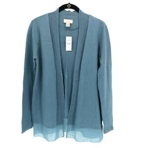 NEW Loft Outlet Open Front Cardigan Sweater S Cotton Linen Crochet Chiffon Blue