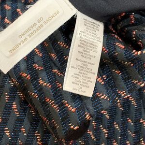 New/never worn — Ann Taylor Loft — blue pencil skirt has zip up back, 2 pocket front — textured mix of blues with maroon/white contrast