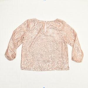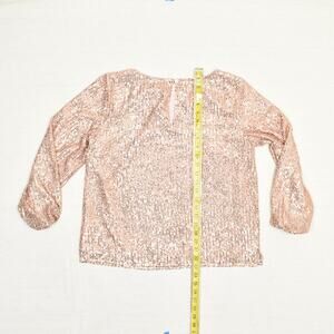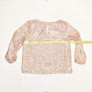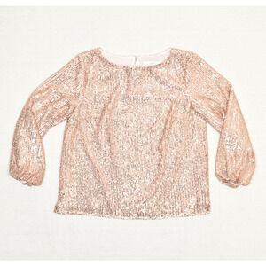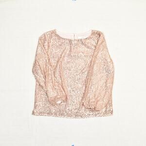 NEW Loft Women's Blouse Sequin Top Long Sleeve Crew Neck Polyester Pink Size M