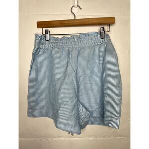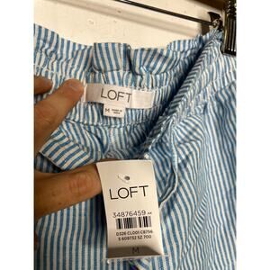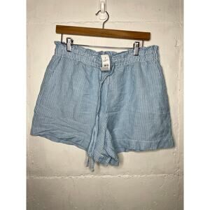 NEW Loft Womens Linen Blend Blue White Stripe Pull On Shorts Size Medium