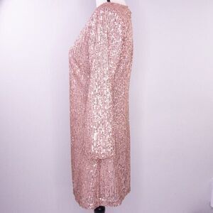 A modern romance with a shift silhouette and billowy blouson sleeves, this dress makes dazzling easy with its shimmering sequins.