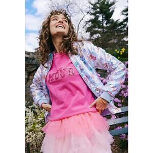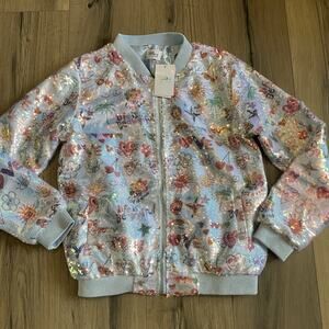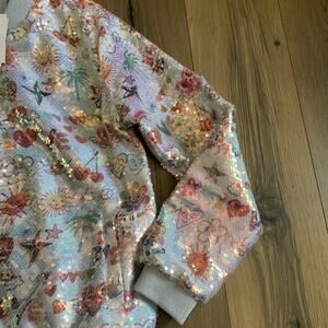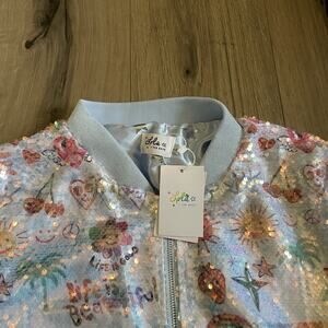 NEW Lola and The Boys Women’s Juniors Large Sequin Doodle Bomber Jacket Colorful