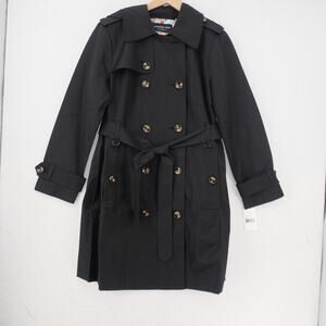 NEW London Fog Classic Trench Coat Jacket Rain Coat BLACK Women's Large