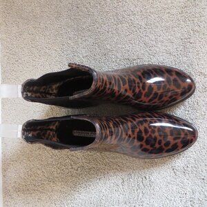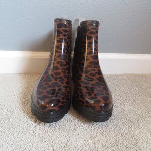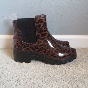 London Fog Womens Ankle Booties Size 10 Brown/Black Rubber Leopard Print Chelsea Boots