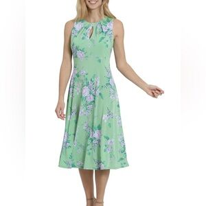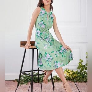 NEW London Times Green Purple Floral Pleated MIDI Dress Size 10
