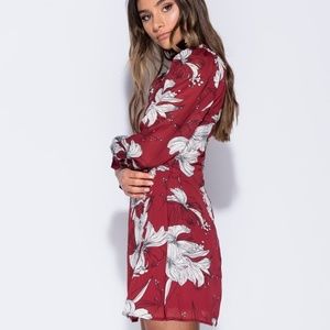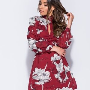 NEW Long Sleeve Floral Keyhole Shift Dress
