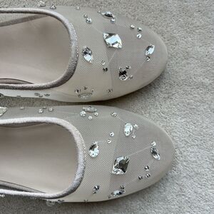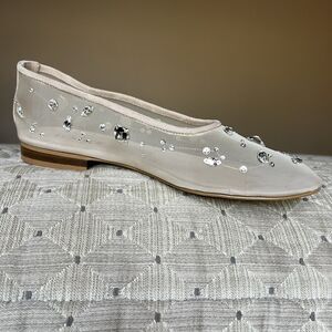 NEW Lookie Atelier Nude Mesh Ballet Flat Shoes EU 38 US 7 Stone Accents Neutral