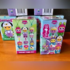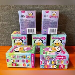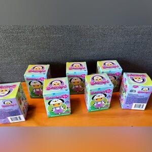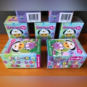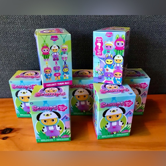 Here is a lot of 7 blind box Scamps by orb toys. These are vinyl hard figure keychains, six different figures to collect. The boxes have been open but the bags are still factory sealed. It’s hard to tell what’s inside. I have circled the ones I think are there but I could be wrong as I cannot see through the bag. I tried holding up to the light and looking for certain features. All seven boxes are included. All seven are sealed. Please feel free to ask questions.