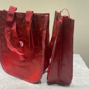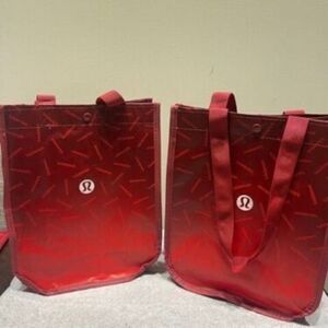 NEW Lot of 2 x LULULEMON 2022 Reusable Holiday pattern shopping tote bags