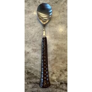 The product is a set of four Noritake Brown 18-8 Stainless Primastone Dinner Spoons made in Japan. These dinner spoons feature a glossy finish and have a Primastone handle material. With the brand's reputation for quality, these spoons are a stylish and durable addition to any table setting.