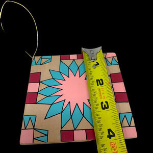 NEW Lot x 4 Southwestern Painted Wooden Balsa Christmas Tree Ornaments 4 x 4 NEW