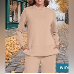 NEW Lounge Wear Rayon Blend Sweater with Wide Leg Pants Set Size M Neutral Cozy