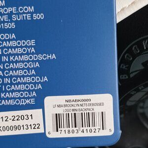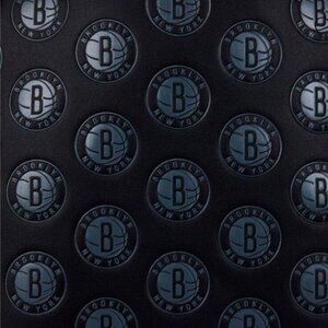 Create a winning game plan that shows your team spirit with this Loungefly NBA Brooklyn Nets Logo Mini Backpack. The embroidered logo patch for the Brooklyn Nets prominently appears above the front zipped compartment. The logo includes a shield, with the word “NETS” arcing over a white basketball, with a black “B” in the middle. A debossed motif of another Brooklyn Nets logo—a black B encircled by the words “Brooklyn New York” in all capital letters— is set against a black background. White trim adds accent and contrast in team uniform color.