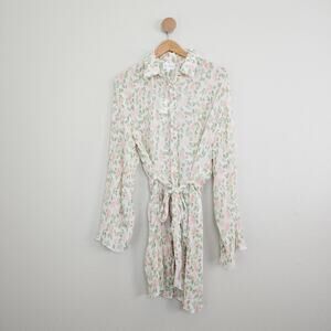 Love + Harmony, Floral Dress, Bell Sleeve / Flowy Sleeve, Sheer / Transparent, Mini Dress, Button-Down, Tie Waist, Pink Green, Spring Dress / Summer Dress, Bohemian / Boho