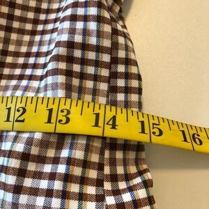 Darling preppy, light academia blazer in a boyfriend style. Brown and white mini plaid with a touch of blue and yellow, makes this the perfect choice for jeans, a mini skirt, or a great career option.