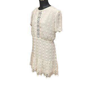 Love X Design Fit and Flare Dotted Dress in Cream White Size XL, textured dotted chiffon fabric, short sleeve, zipper closure, lined.