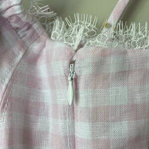 NEW LoveShackFancy Shai Linen Gingham Mini Dress Pink | US 2 UK 6