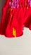 Chic red mini skirt with vibrant floral pattern. Features a playful ruffle hem. Approximate measurements taken laying flat: