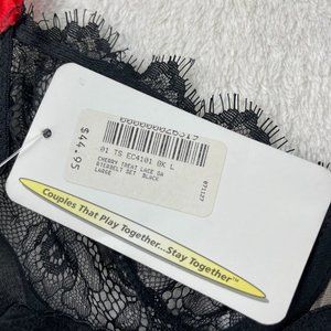 NEW Lover's Lane Lace Garterbelt Set Black Red Lingerie Size L Stockings NWT