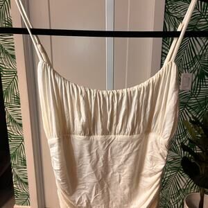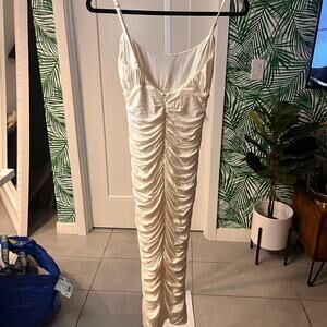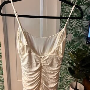 NEW Lovers and Friends Ivory Satin Ruched Spaghetti Straps Midi Dress Size XS