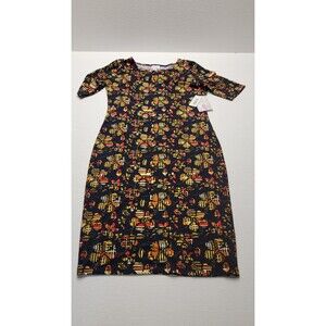 Discover the comfort and style of this brand new with tags (NWT) LuLaRoe Julia dress! This stunning dress features a unique black, yellow, and red geometric/abstract pattern, perfect for adding a pop of color to your wardrobe. The Julia dress is known for its flattering, form-fitting silhouette, scoop neckline, and mid-length sleeves, making it versatile for both casual wear and dressier occasions. Made from a comfortable and stretchy knit blend (typically 96% Spun Polyester, 4% Spandex), it offers ease of movement and a soft feel.