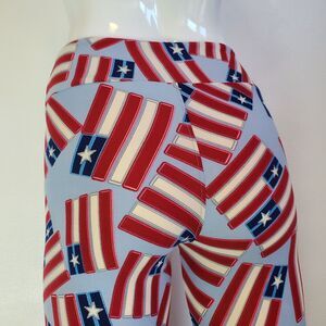 NEW LuLaRoe light blue leggings with red, white, and blue flag print. High-waisted with elastic waistband.