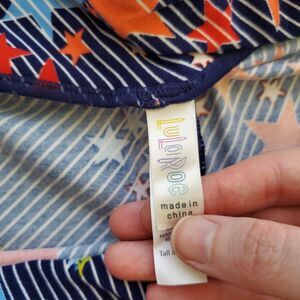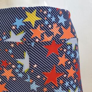 NEW LuLaRoe navy blue and white striped leggings with light blue, red, orange, and yellow stars. High-waisted with elastic waistband.