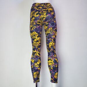 NEW LuLaRoe purple, navy blue, light blue, and yellow floral print leggings. High-waisted with elastic waistband.