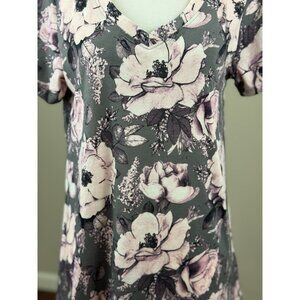 NEW LuLaRoe Womens Knit Tunic Top S Short Sleeve Gray Pink Floral Scoop Neck