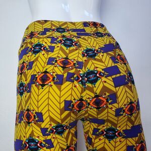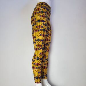 NEW LuLaRoe mustard yellow and purple geometric print leggings. High-waisted with elastic waistband.