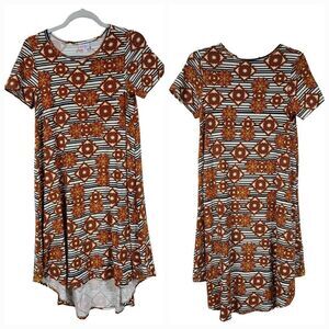 LuLaRoe Carly Dress Tribal Brown Stripe Butter Soft Knit Swing High-Low Midi