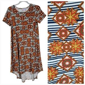 NEW LuLaRoe Carly Dress Tribal Brown Stripe Butter Soft Swing High-Low Midi XXS