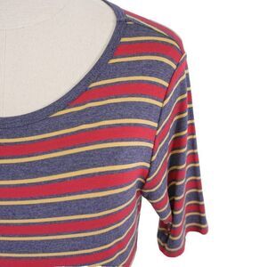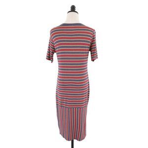 NEW LuLaRoe Julia Gray Red Striped Bodycon Dress Medium Short Sleeve Scoop Neck