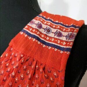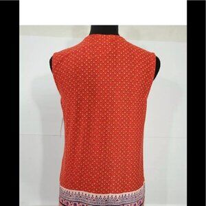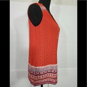 This sleeveless top's relaxed fit and scoop neck allow an easy fit that lets you feel the air, and the vivid, floral border print design that lets your feel your artistic side.