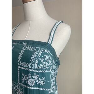 NEW Lucky Brand Embroidered Green White Square Neck Cami Dress size Small