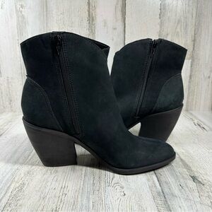 NEW Lucky Brand Loxona Black Leather Block Heel Ankle Boots #1033